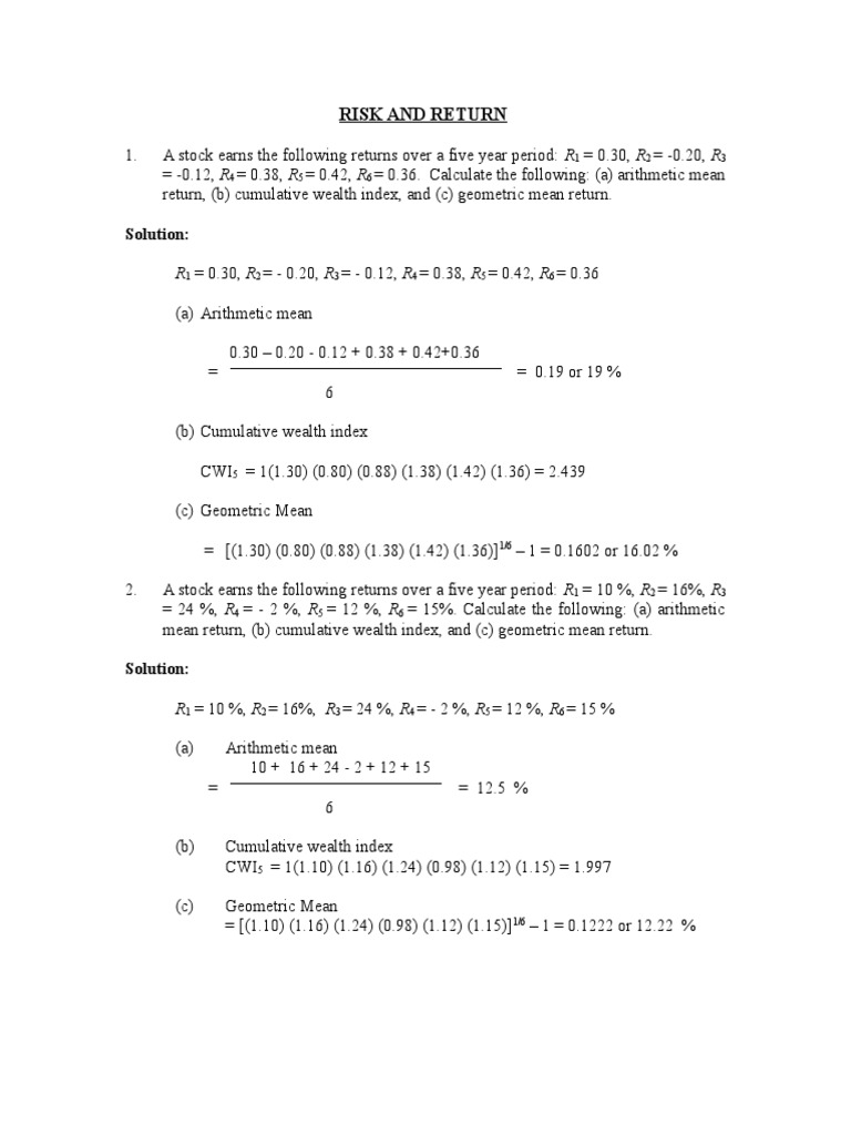 Risk And Return Pdf Beta Finance Capital Asset Pricing Model